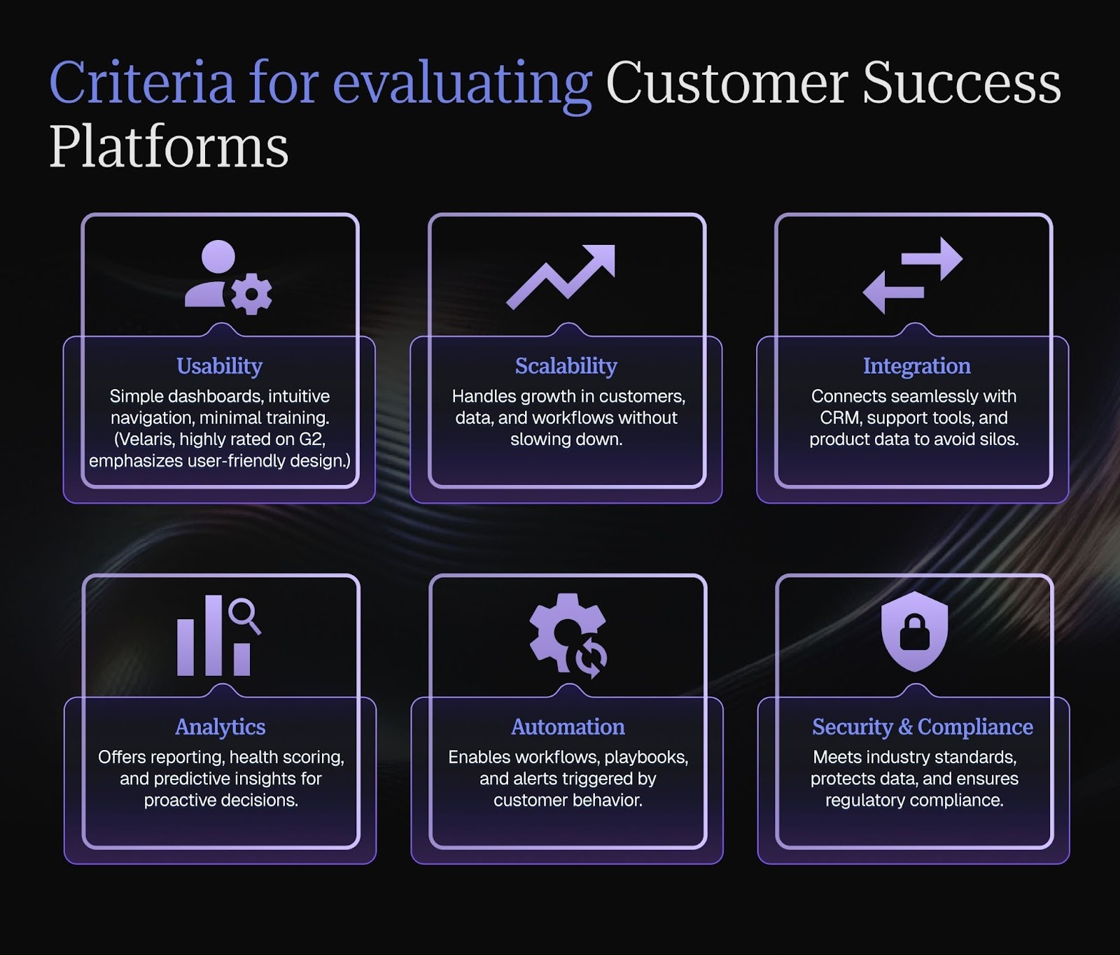 When choosing a customer success platform, it’s important to look beyond surface features and focus on the qualities that will truly support your team and customers. The following criteria provide a structured way to evaluate platforms and ensure you select the right fit.