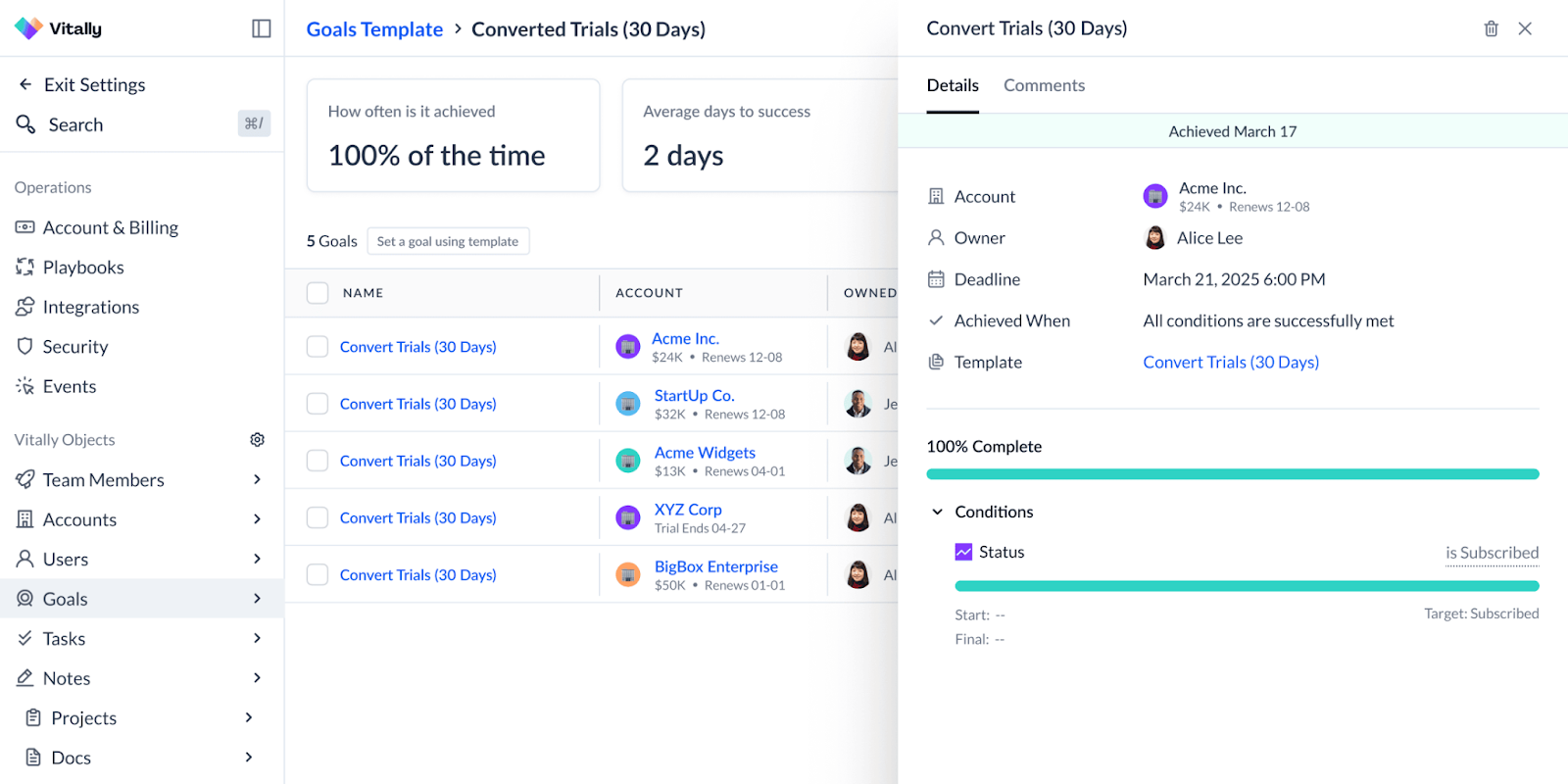 Vitally is a Customer Success platform built with simplicity and speed in mind. It offers an intuitive interface and core features designed to help teams manage customer health and streamline their workflows. However, Vitally’s limitations in customization and advanced functionality may not meet the needs of scaling or enterprise-level organizations.