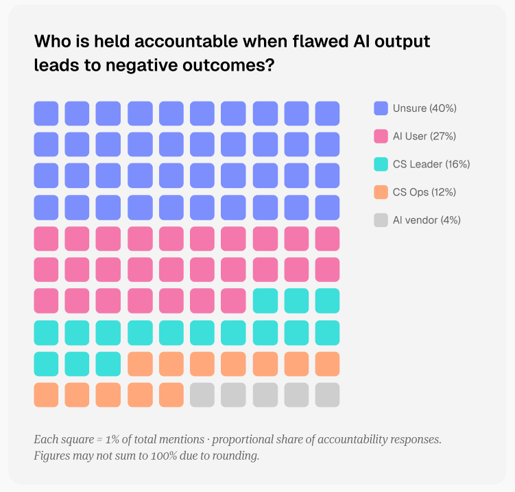 Even among those who do assign ownership, responsibility is spread across multiple roles, from the CSM using the tool to leadership or operations. A significant minority even point to the AI vendor itself.