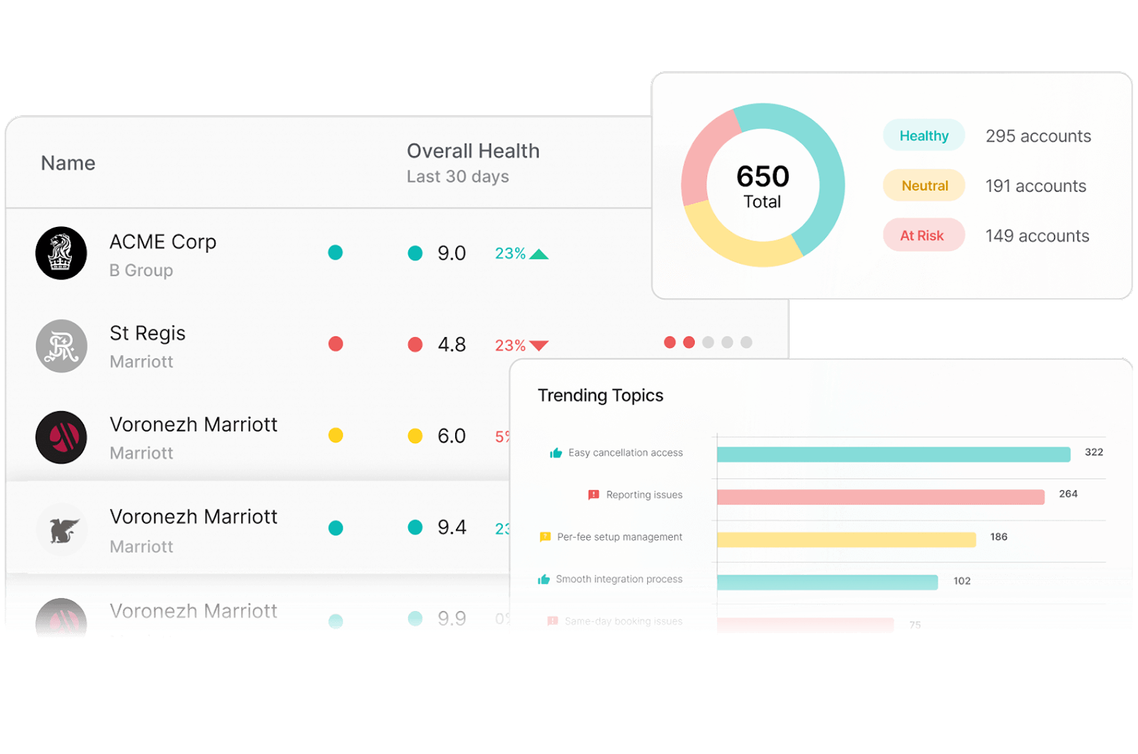 Customer Health Scoring: ChurnZero's AI-driven customer health scoring helps CSMs identify the likelihood of a customer churning based on various metrics such as product usage, support tickets, and satisfaction levels.