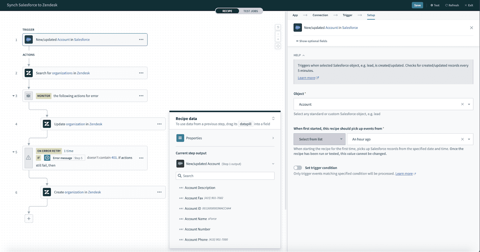One of Workato’s key strengths is its advanced data integration capabilities, allowing teams to unify data across departments like sales, support, and marketing. This eliminates silos and ensures that everyone has access to up-to-date information.