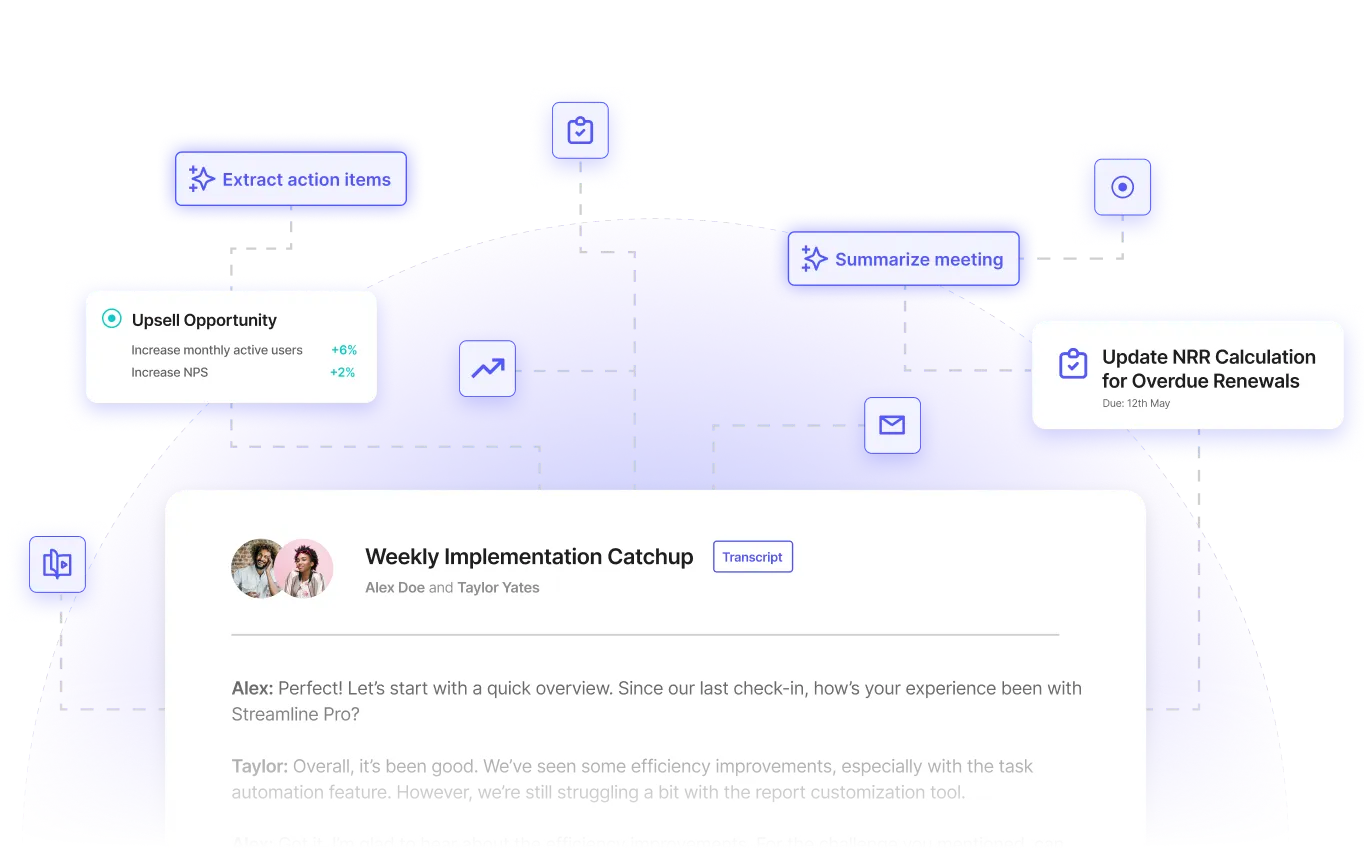 Our AI features automate typical CS busywork and surface critical information to the right people at the right time, so that no one has to chase or dig for updates.